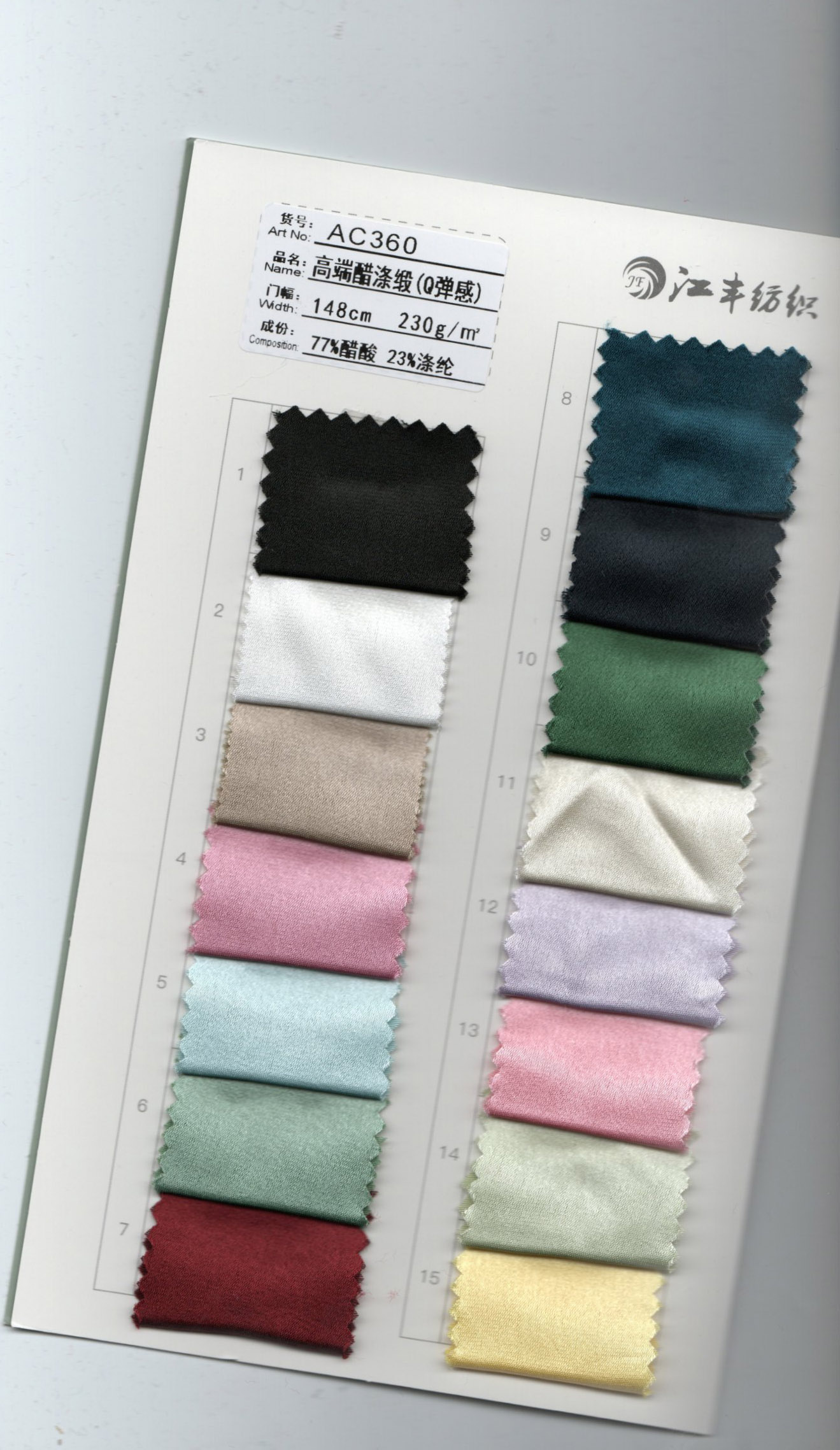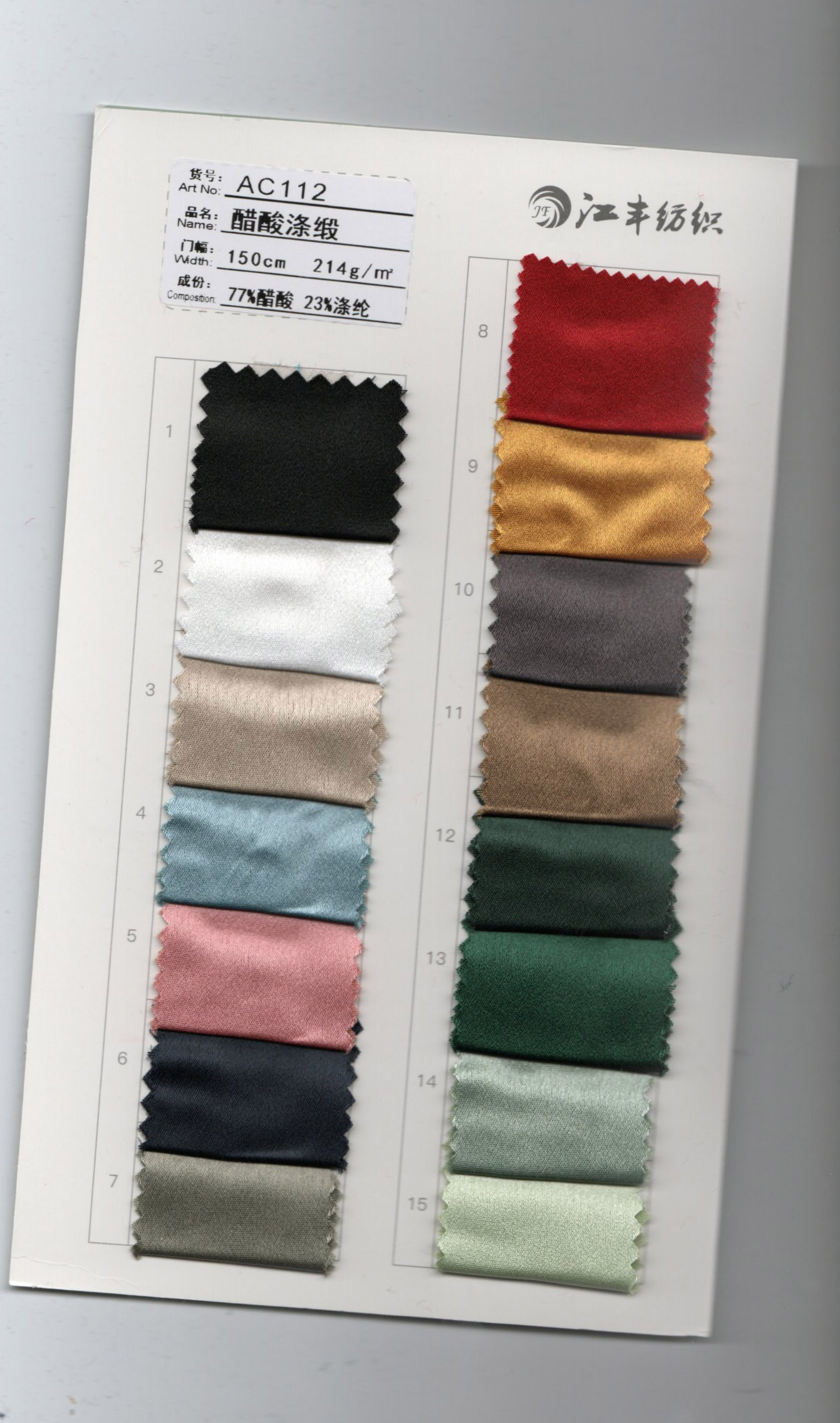 15%acetate 83%polyester 2%spandex